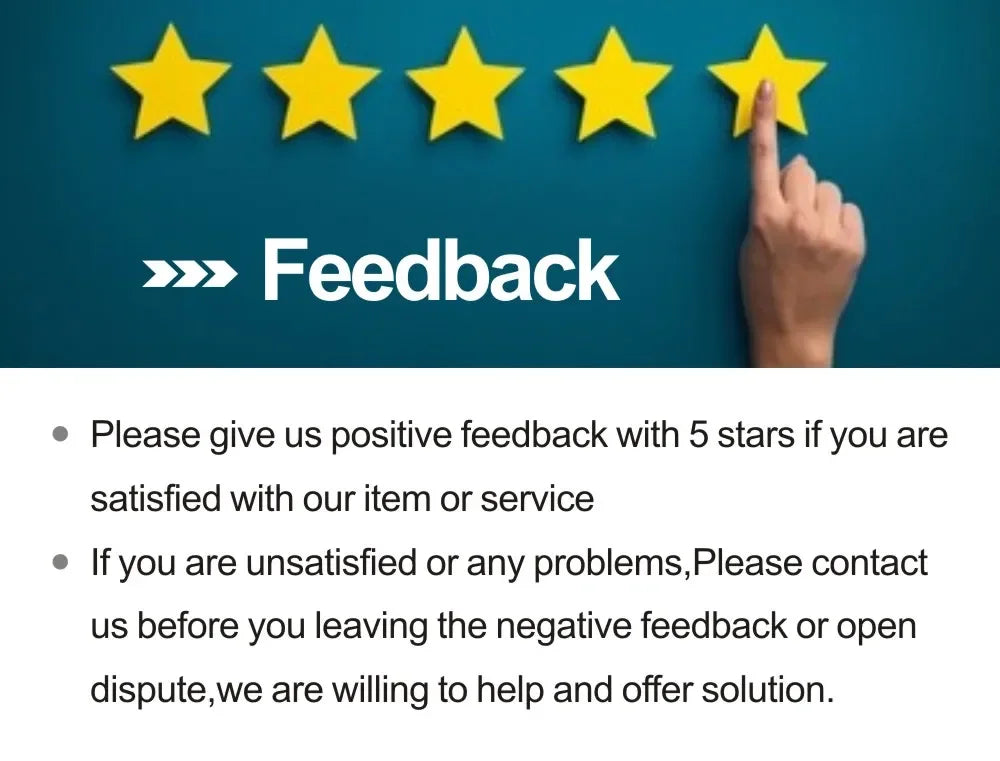 Your satisfaction is our pursuit. So if there is anything to make you unsatisfied,(including our product and service, or other thing).Please contact us to serve you again before you put the order to dispute, we will try our best to solve the problem for you.
