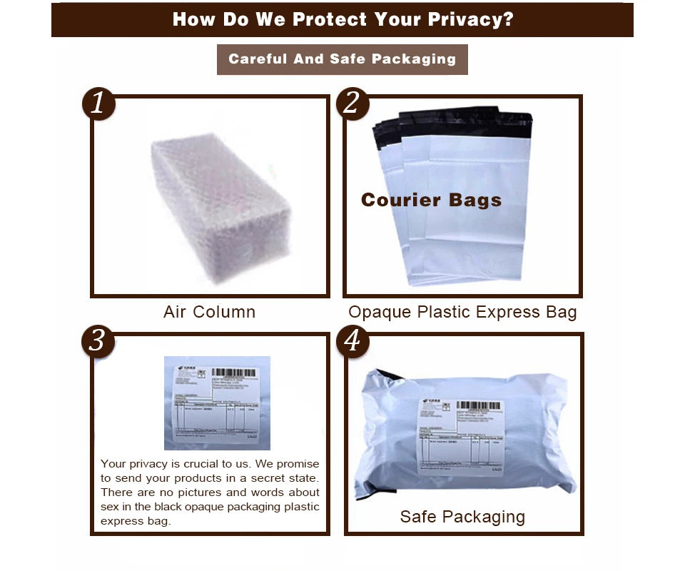 Your privacy is crucial to us. We promise to send your products in a secret state. There are no pictures and words about sex in the opaque packaging plastic express bag.